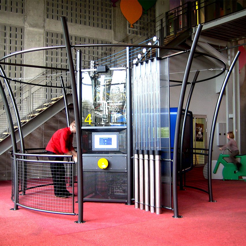 An iconic multi-user installation that guides users through the process of creating new materials from post-consumer waste. Four screens take platers through the stages of recycling using hands-on challenges.