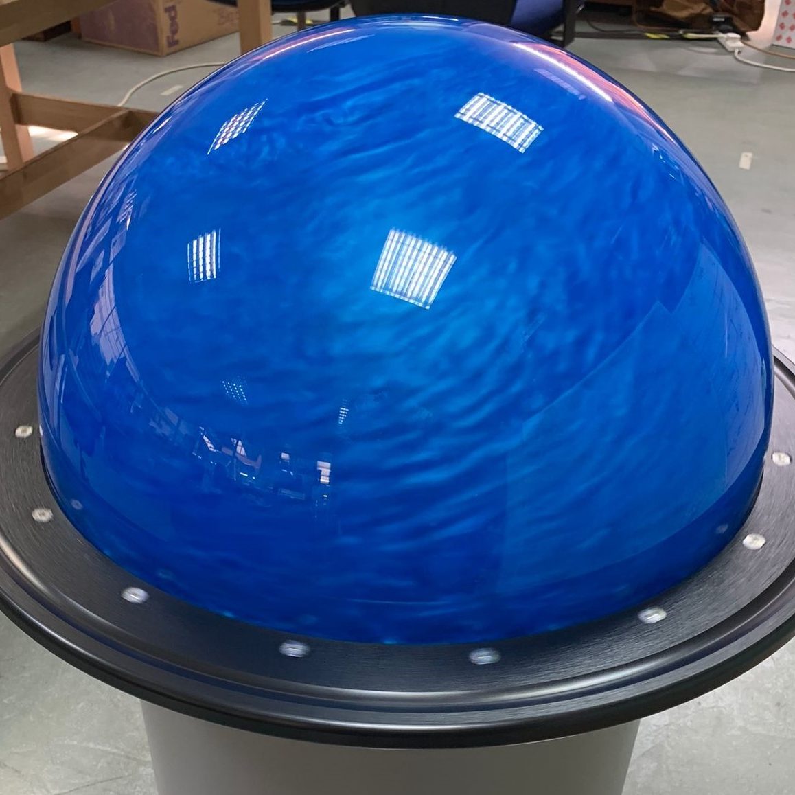 Rheoscopic fluid allows visitors to see the beautiful fluid movements created by spinning the orb.